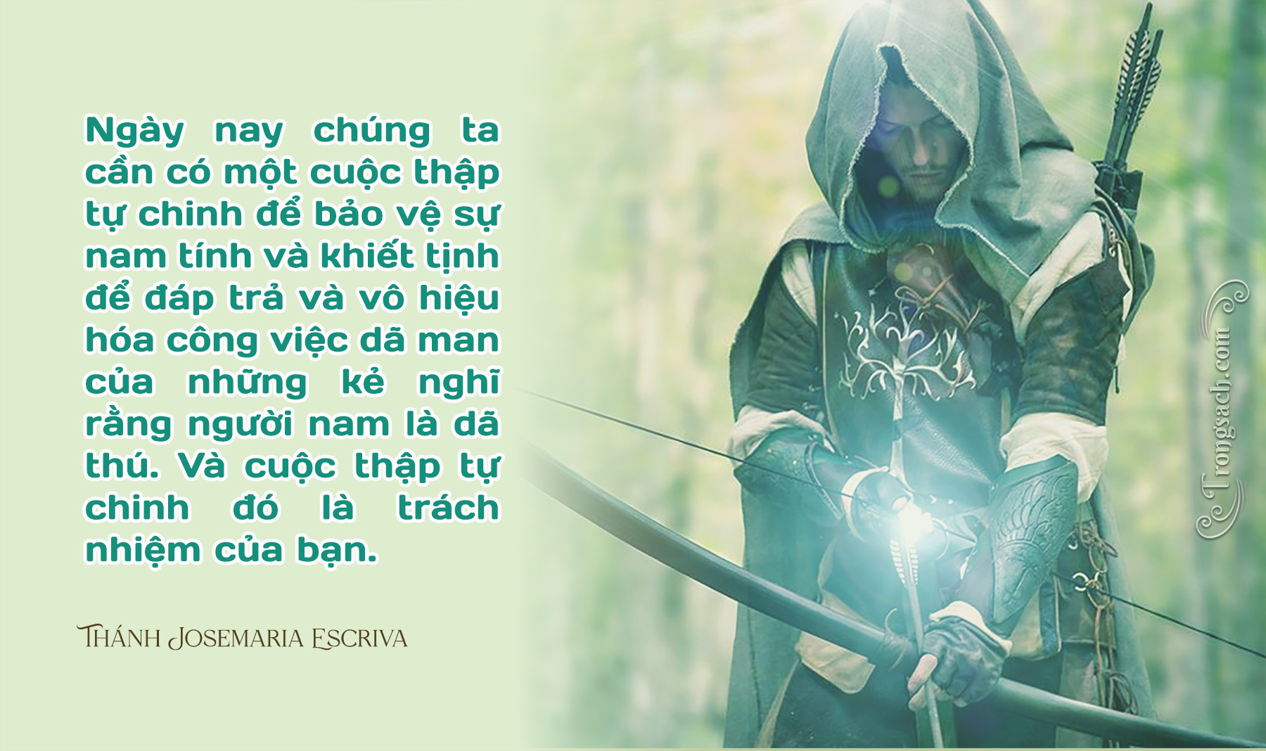 Thật không may, thế giới ngày nay lại khiến người nam và nữ tin rằng sự kết hợp ấy là không thể. Hãy nhìn xem những bộ sitcom (phim hài) chiếu trên tivi ngày nay. Bao nhiêu lần ta thấy người nam bị mô tả là những tay lăng nhăng vô tâm? Bạn còn thấy được là Hollywood đã mô tả những người gay (đồng tính nam) là người bạn duy nhất của nữ giới mà sẽ không đe dọa gì cô ta. Nói cách khác, người nữ cảm thấy an toàn nhất là khi cô ấy ở bên những người nam mà độ nam tính cũng như sự khao khát tình dục lành mạnh nơi họ đã bị triệt tiêu hoàn toàn. Trách nhiệm của người nam Kitô hữu đối với người nữ, cũng như đối với những người nam khác, là bác bỏ điều dối trá này. Thánh Josemaria Escriva đã nói: “Ngày nay chúng ta cần có một cuộc thập tự chinh để bảo vệ sự nam tính và khiết tịnh để đáp trả và vô hiệu hóa công việc dã man của những kẻ nghĩ rằng người nam là dã thú. Và cuộc thập tự chinh đó là trách nhiệm của bạn.”